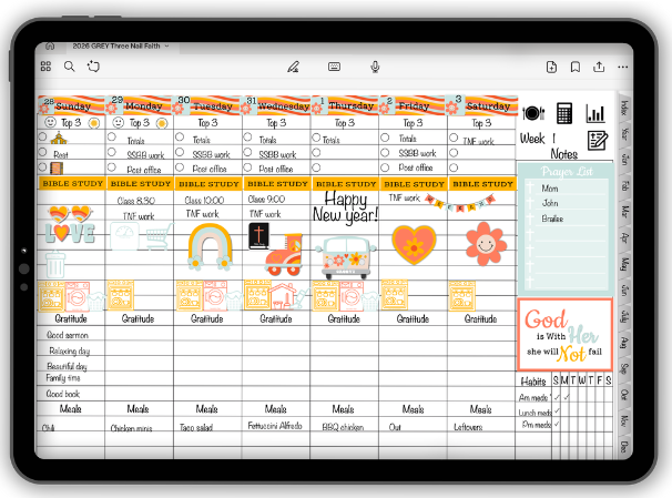 Whether you’re at home, at church, or on the go, this digital planner fits right into your rhythm. Compatible with your favorite digital note-taking apps, it’s easy to use, customizable, and always at your fingertips.