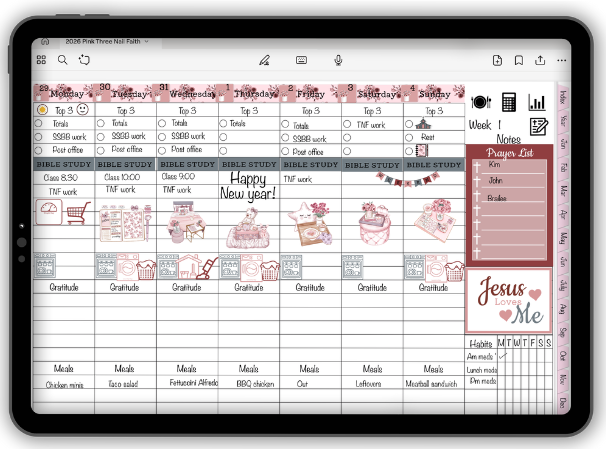 Whether you’re at home, at church, or on the go, this digital planner fits right into your rhythm. Compatible with your favorite digital note-taking apps, it’s easy to use, customizable, and always at your fingertips.